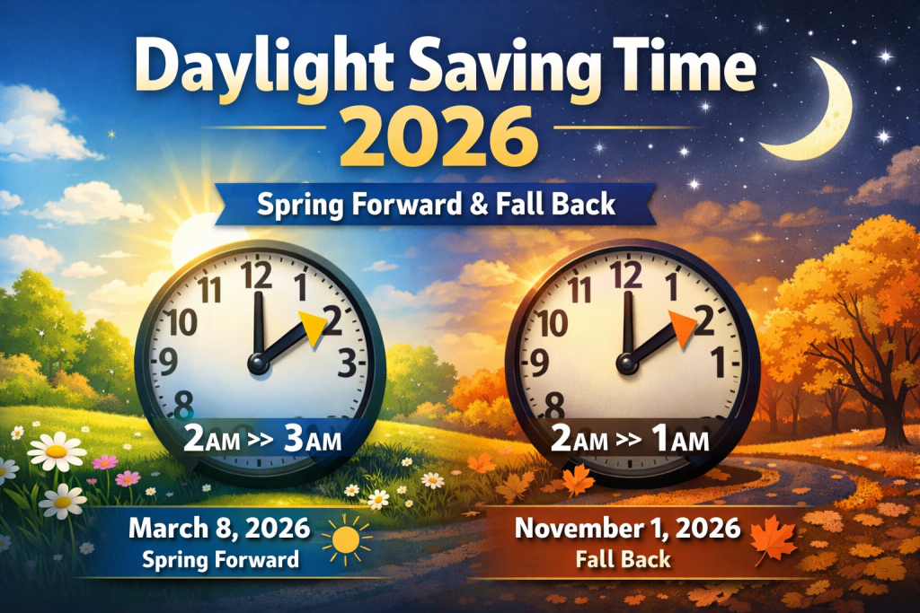 Daylight Saving Time (DST) is the practice of moving clocks forward during warmer months so that evenings have more daylight and mornings have less. Millions of people across North America and Europe adjust their clocks every year as part of this seasonal time change. In 2026, Daylight Saving Time will once again affect several countries, changing daily schedules, travel plans, and international business timings. This article explains the Daylight Saving Time 2026 schedule, how it works, and which countries follow it.