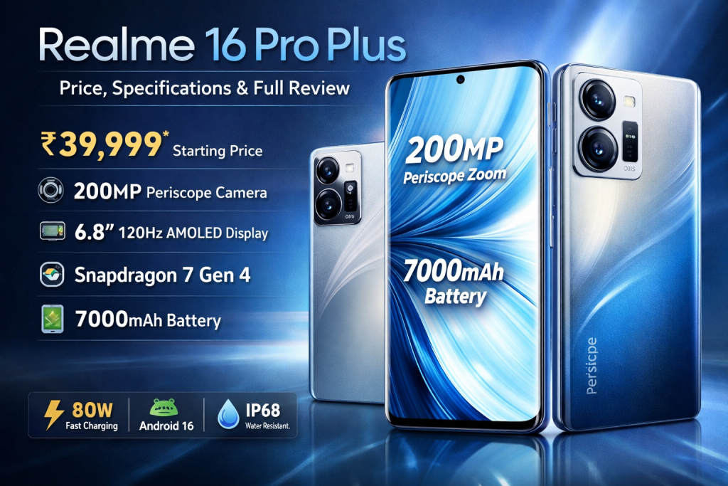 Realme has officially launched the Realme 16 Pro Plus 5G in India as a part of its 16 series lineup, marking the return of the Pro+ variant in the number series. Positioned in the upper mid-range segment, this phone promises flagship-inspired features — especially in cameras, display, and battery — while keeping the price competitive for performance-hungry users. Price & Availability 8GB + 128GB – ₹39,999 8GB + 256GB – ₹41,999 It will go on sale in India from January 9, 2026 through Flipkart and the Realme online store