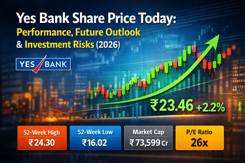 Yes Bank’s share price has been actively trading around ₹23–24 on major Indian exchanges as of January 2026, with significant volatility driven by earnings expectations and trading volumes. Pre-market data shows the stock at around ₹23.46 with heavy volumes and strong investor interest ahead of quarterly reports This price movement reflects a complicated backdrop of earnings, strategic investments, and evolving market sentiment.