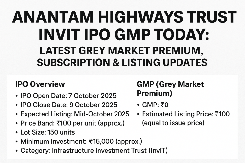 The Anantam Highways Trust InvIT IPO has opened for subscription and is drawing attention from investors interested in infrastructure and long-term yield assets. Let’s take a closer look at the IPO details, grey market premium (GMP), and expected listing performance