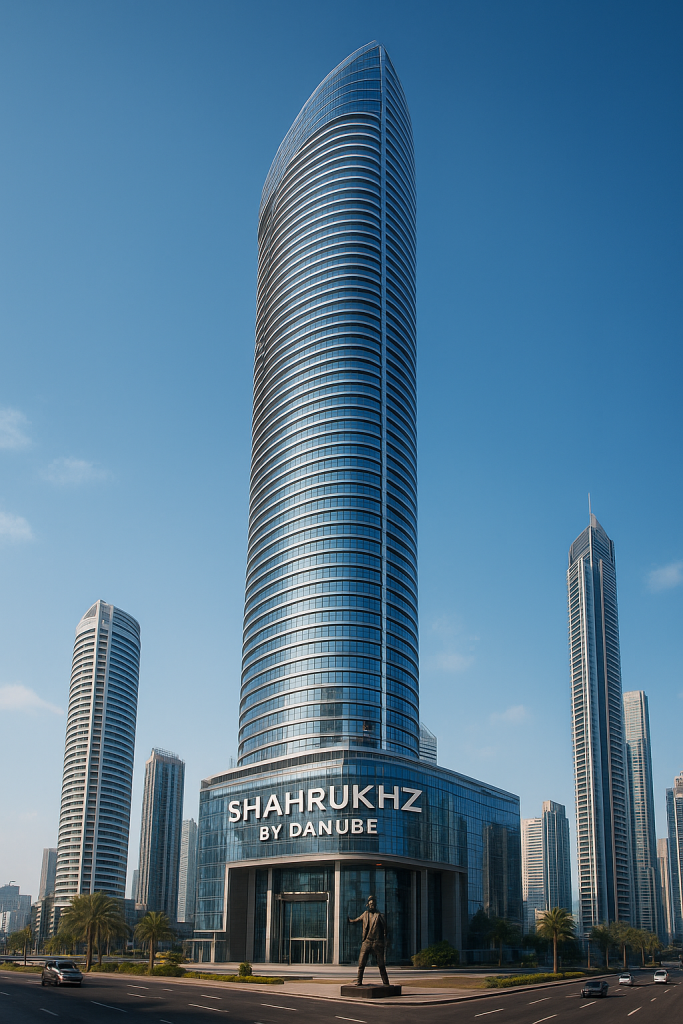 Shahrukhz by Danube is a futuristic commercial tower designed to become a global business address in Dubai. It marks one of the first-ever large commercial developments named after a Bollywood icon. Designed with modern business needs in mind, the tower will feature high-end office spaces, premium amenities and advanced facilities to attract entrepreneurs, startups, SMEs, and multinational companies