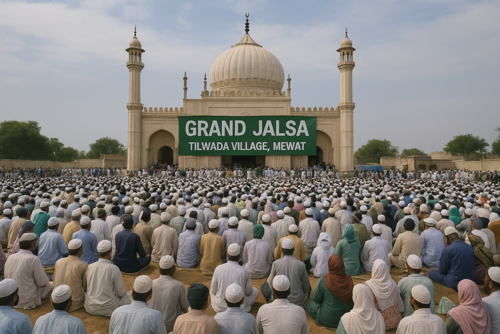 An Islamic gathering was recently held in Tilwara village, Mewat, drawing a large number of attendees from surrounding towns and districts. Speakers at the event delivered messages of peace, brotherhood, and faith. Following the path of Muhammad (peace be upon him), the gathering preached peace.